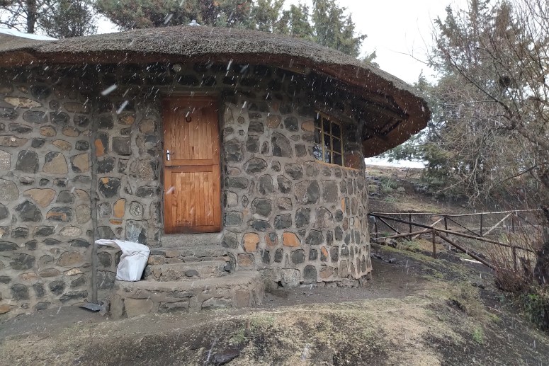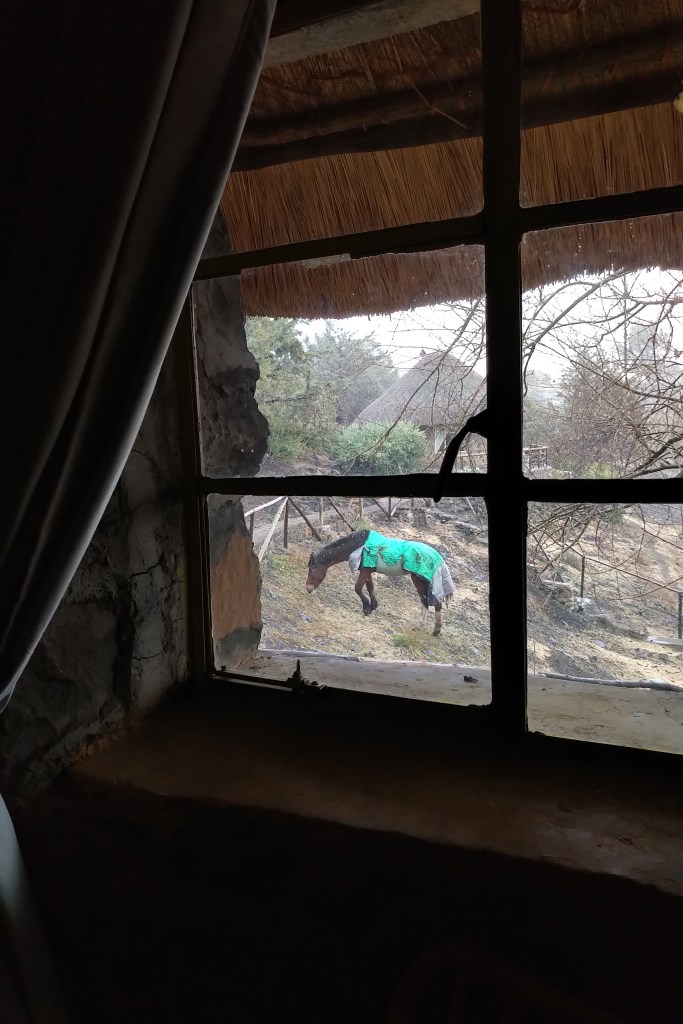 I finally made it to the village of Semonkong around 7pm, and transitioned onto the lumpy dirt roads for the final few kilometers. It dipped downwards alongside the river and a small bridge connected to my accomodation. I couldn’t see anything but knocked on the kitchen door and found someone to help me. She brought me to my rondel, which was full of three bunk beds but no other people, and pointed to the firewood and fireplace and left me to sleep.
