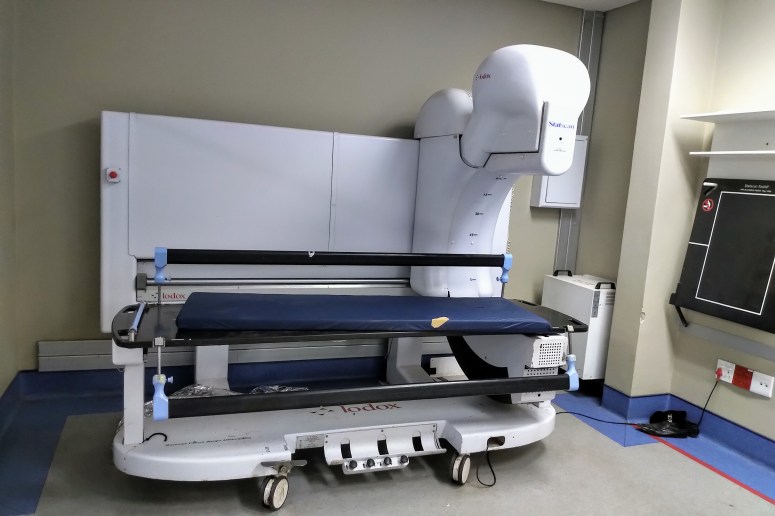 This ‘Lodox’ machine. Located inside the doors of the trauma resusc area. This is a very fast full-body x-ray machine. You throw your poly-trauma or penetrating thorax patient up on here and you have many answers in 30 seconds.
