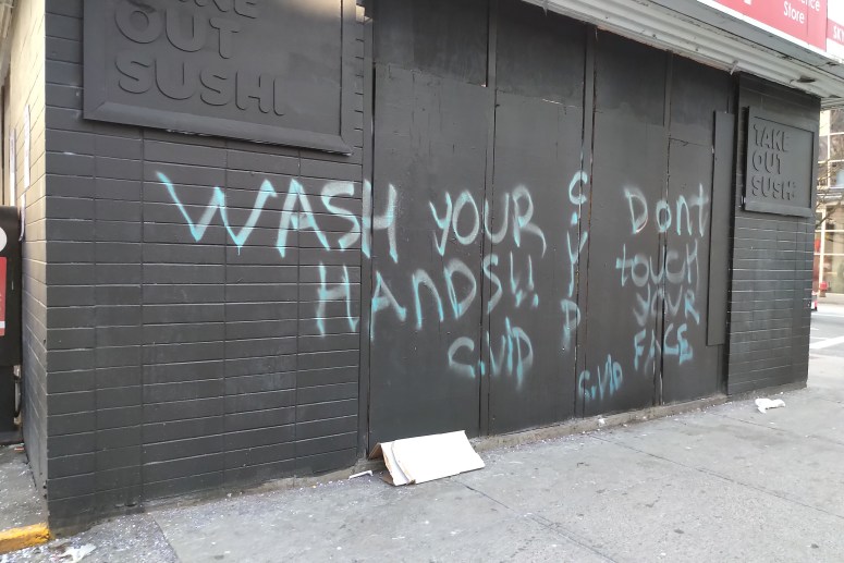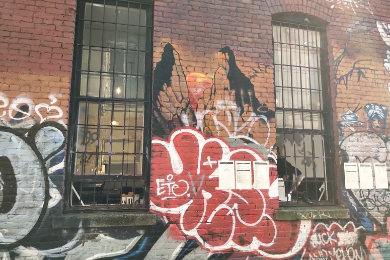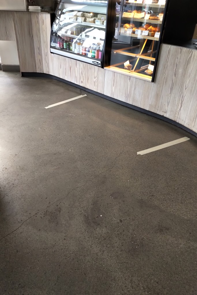To me, they have done a very nice job, and benefited from their alley facing windows. They leveraged this to continue functioning, all while greatly reducing the risk of viral spread and honoring social expectations.